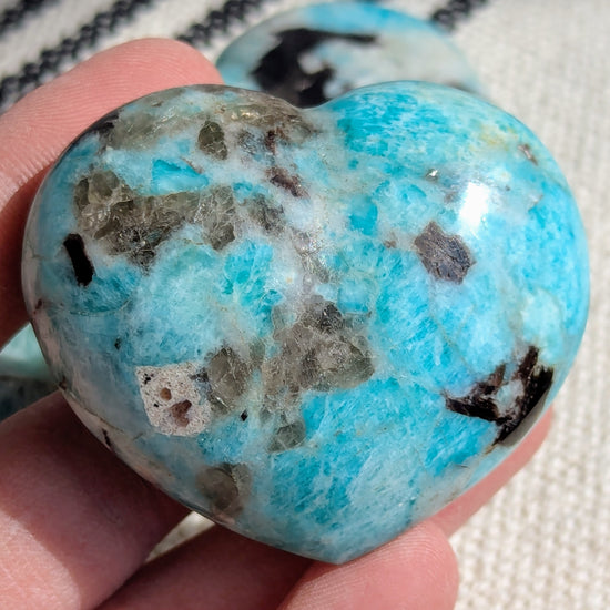 Bring soothing energy and gentle beauty into your space with this Amazonite Heart Crystal from Madagascar, a polished natural gemstone cherished for its calming blue-green tones and peaceful vibration. Carved into a heart shape, this crystal symbolizes emotional harmony, compassion, and balanced communication, making it both a meaningful keepsake and a powerful healing stone.