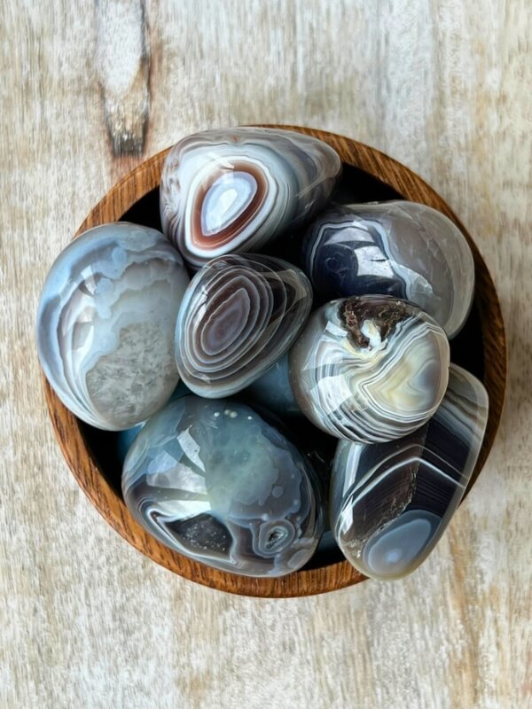 Botswana Agate, formed over millions of years in volcanic landscapes, s a captivating gemstone known for its mesmerizing bands of color.