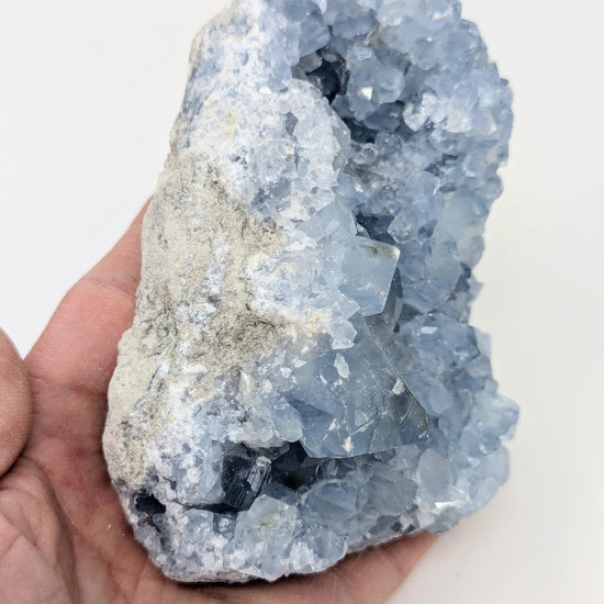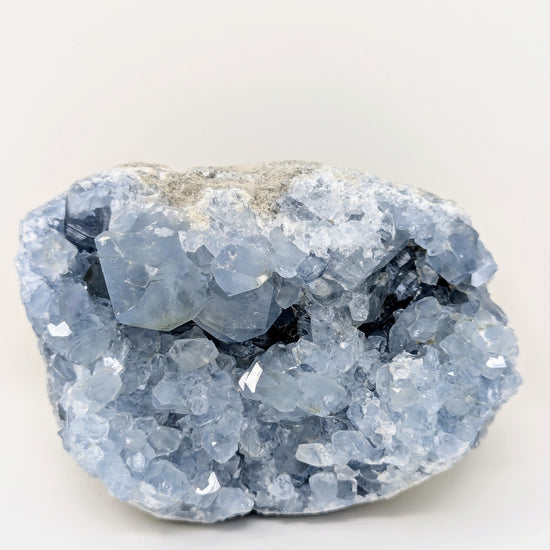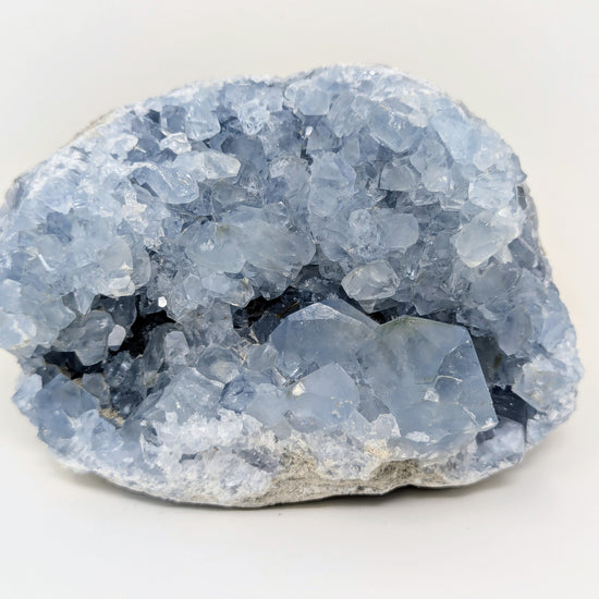 Uncover the serene beauty of our Large Raw Celestite Crystal Cluster Geode, a natural blue celestine specimen prized by collectors, spiritual seekers, and crystal lovers alike. Hand-selected from the finest Madagascar celestite deposits, each crystal cluster offers its own unique formation, vibrant sky-blue hues, and raw geological character that make it an exceptional addition to any collection or sacred space.