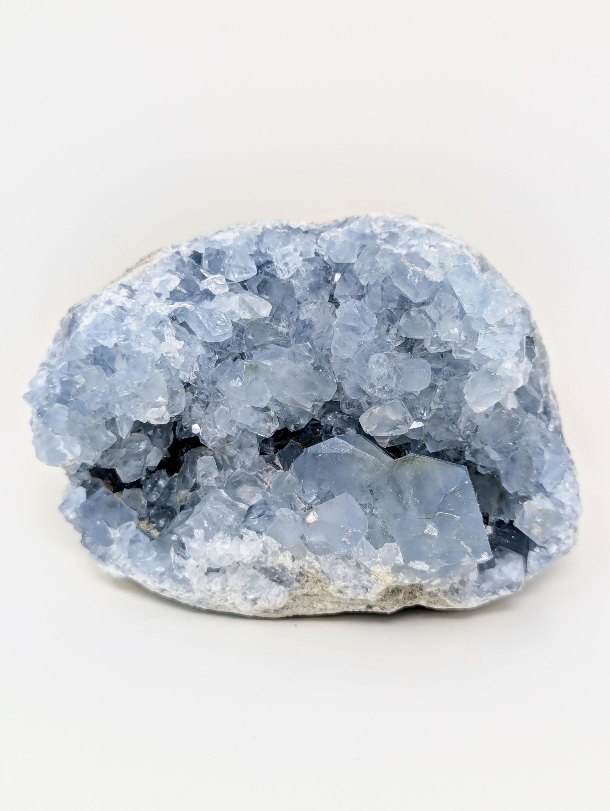 This natural crystal geode features translucent, gem-quality points and rich color — ideal for display as a home décor accent, meditation focus, or high-vibrational energy stone. As a raw celestite cluster, it embodies both the natural beauty of earth-formed minerals and the spiritual depth sought by energy workers and mindful practitioners.