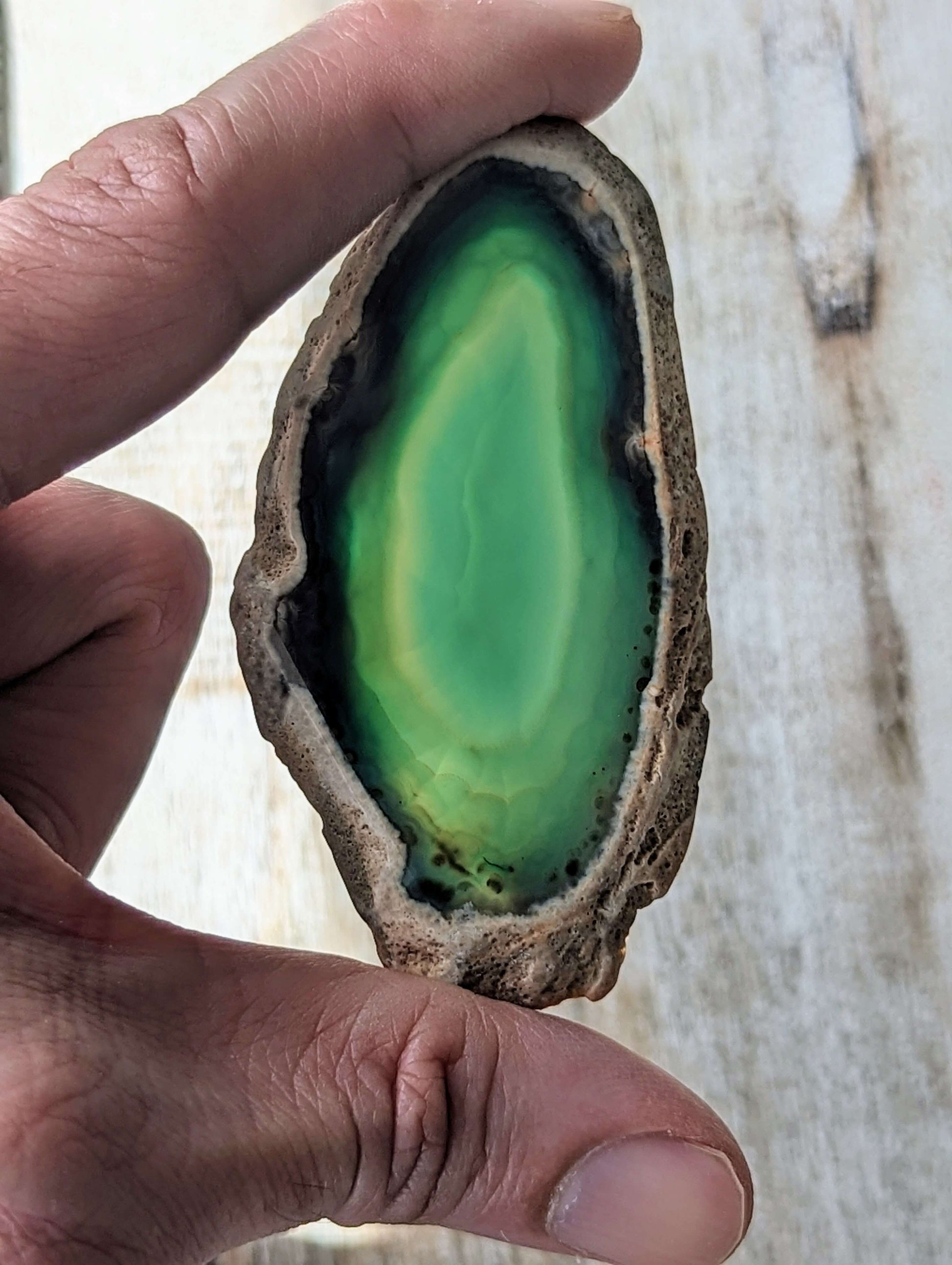 Natural Green Agate Geode Slice 8 cm to 9 cm
