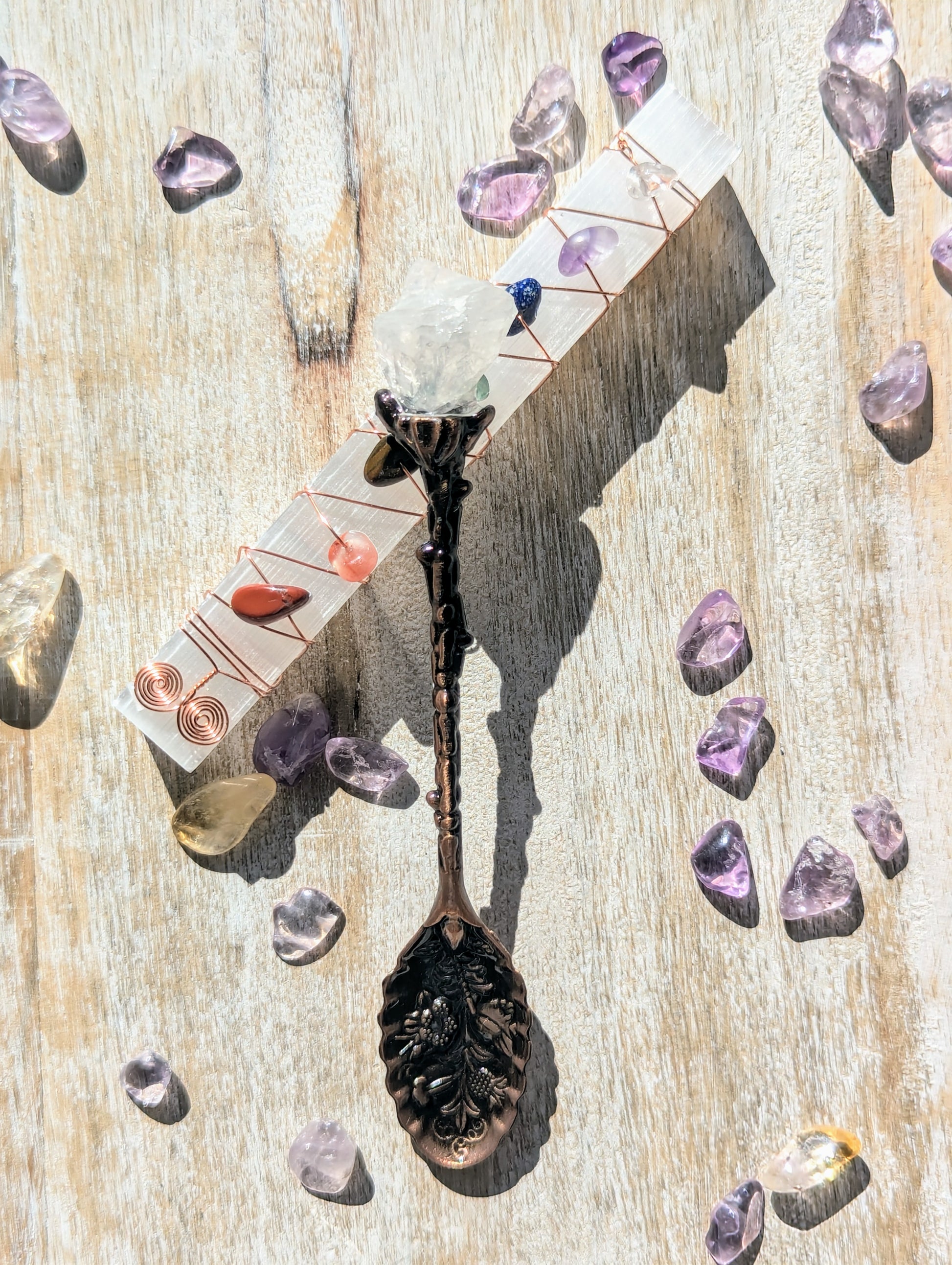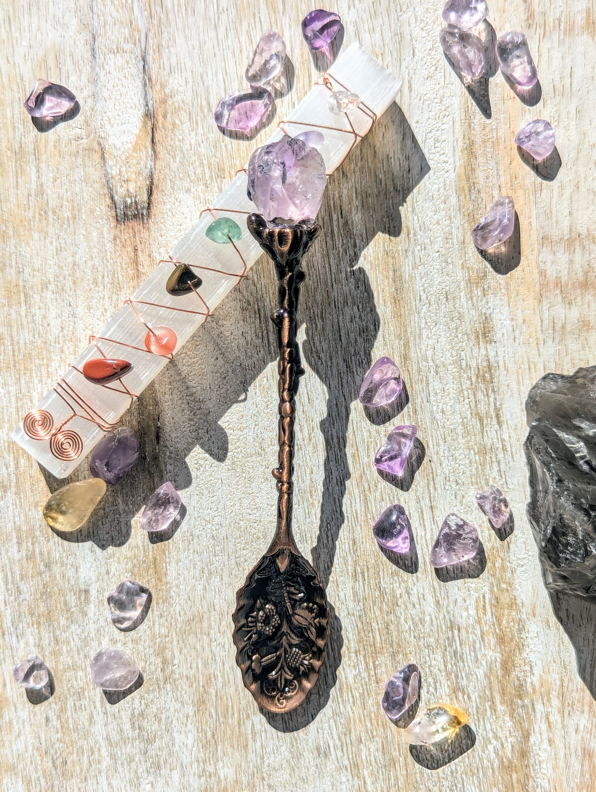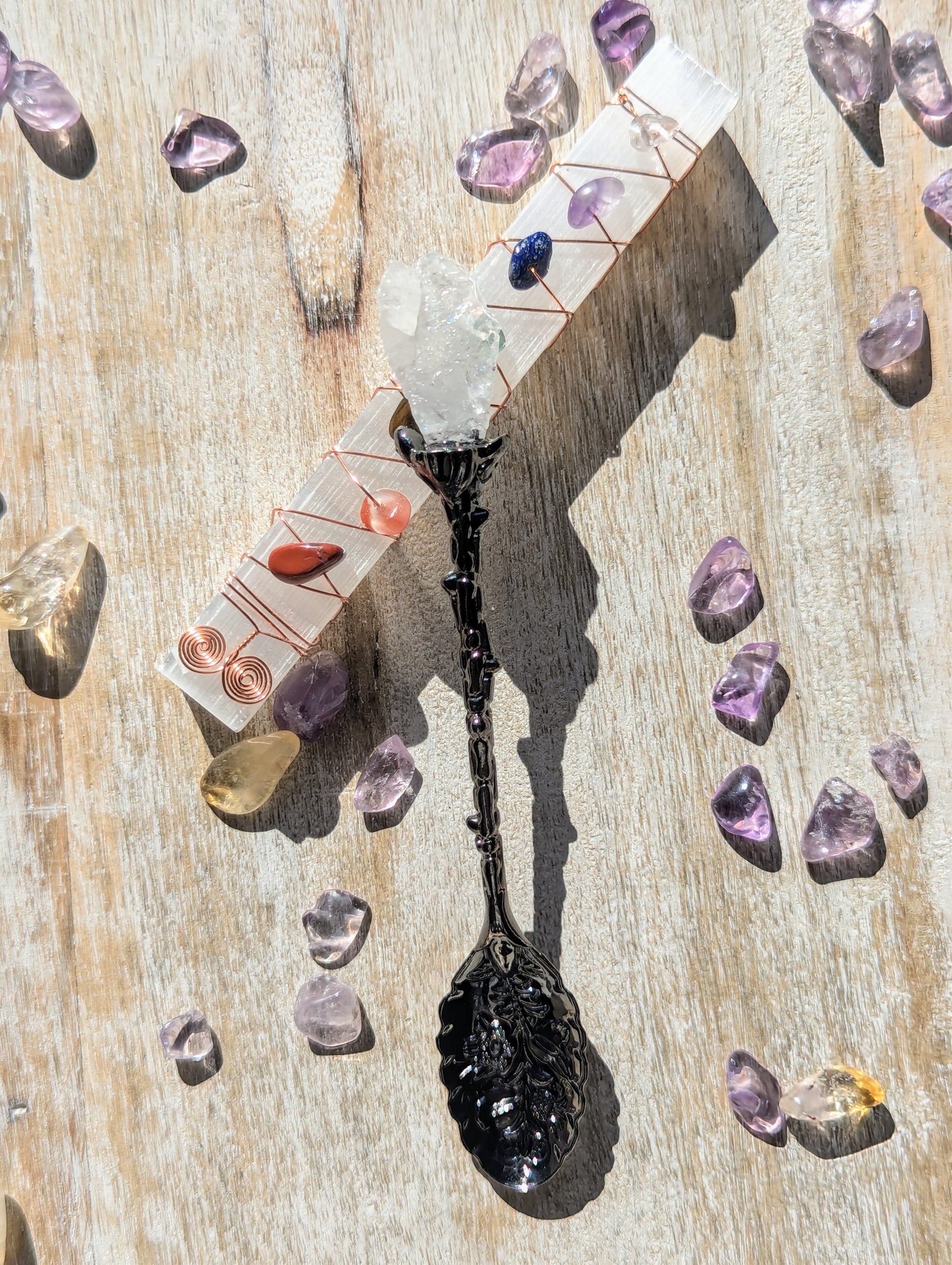 The crystal used in each spoon possesses unique properties that can enhance your spiritual practice or home environment. Some of the potential benefits may include: