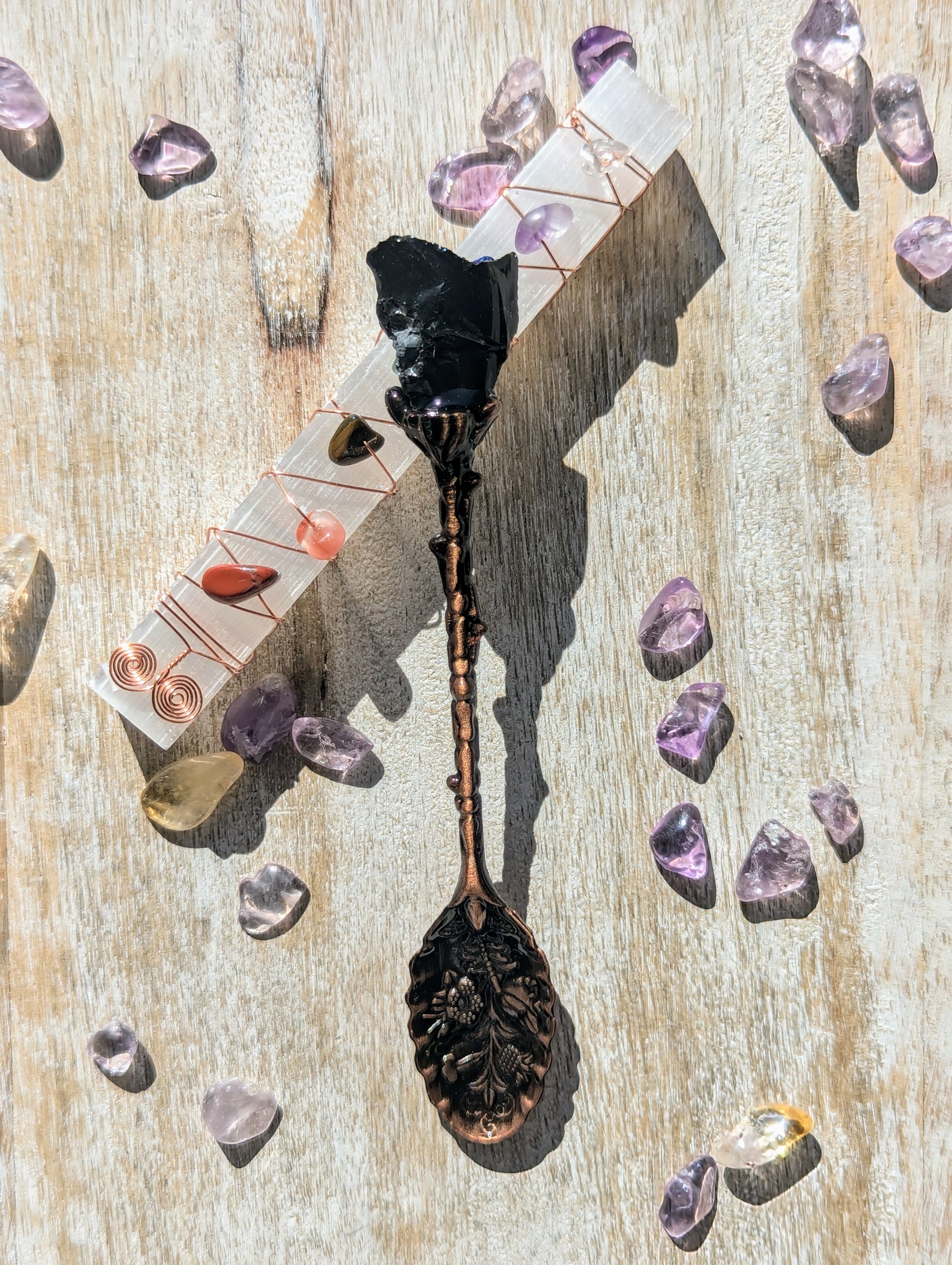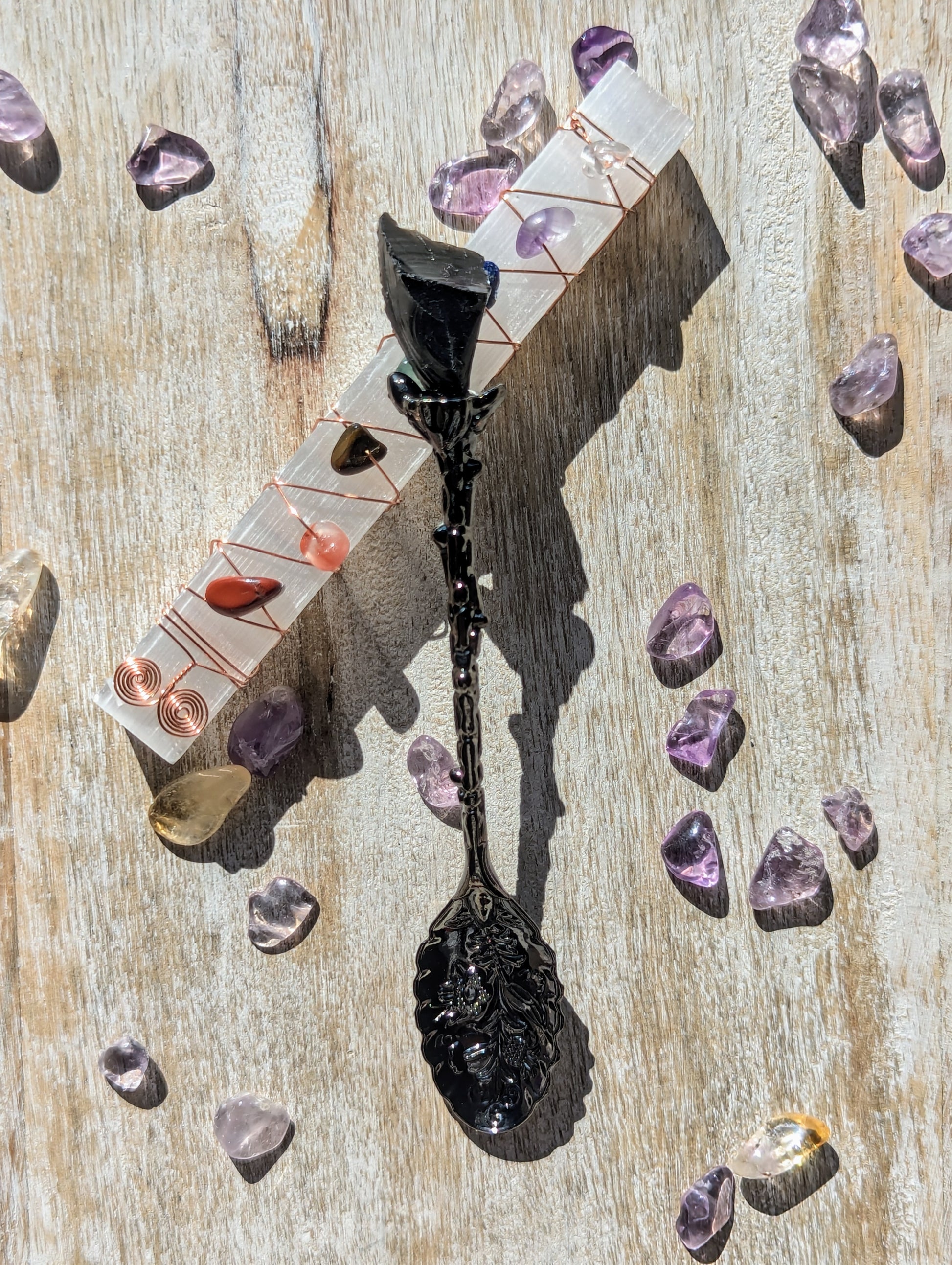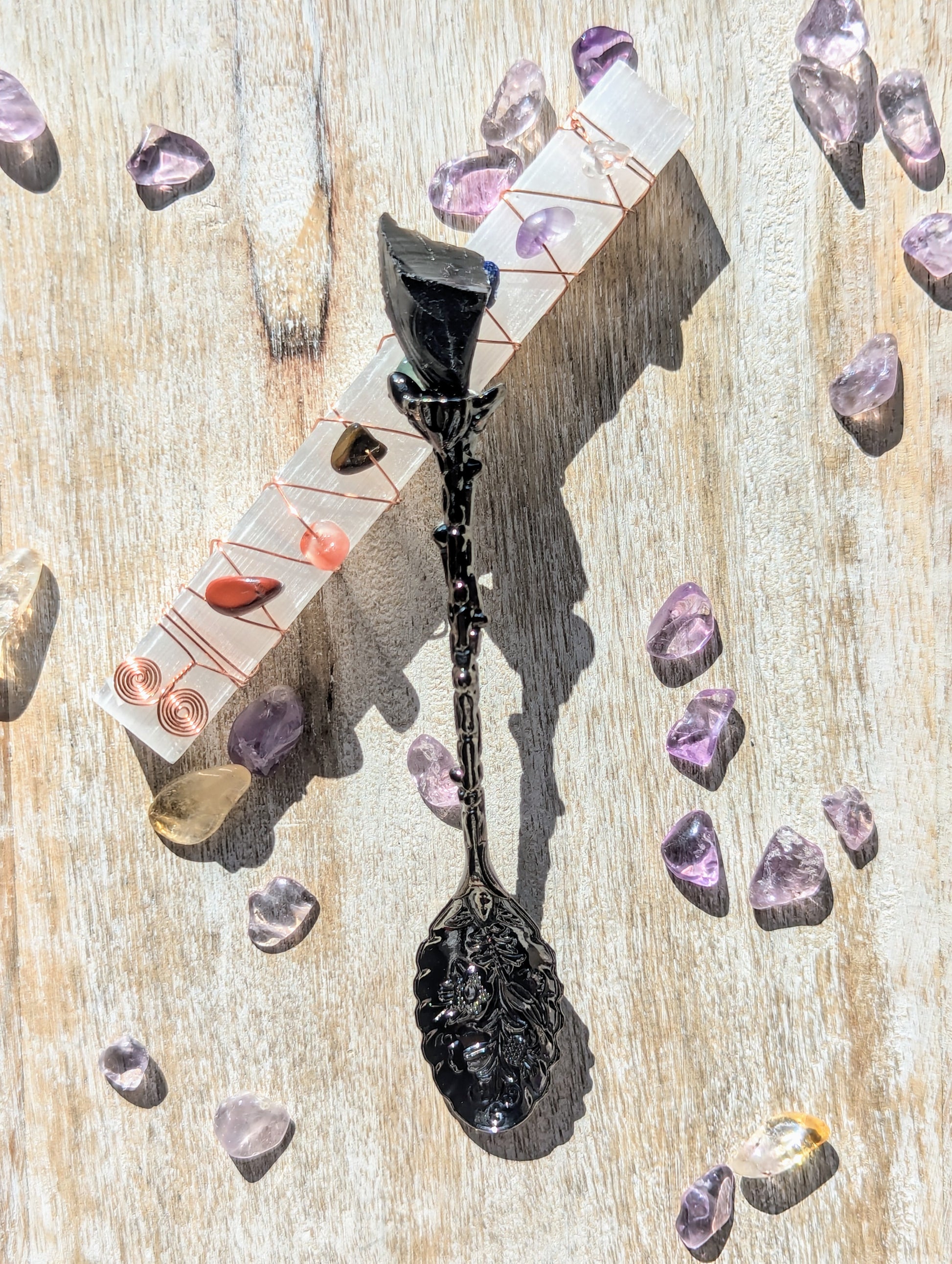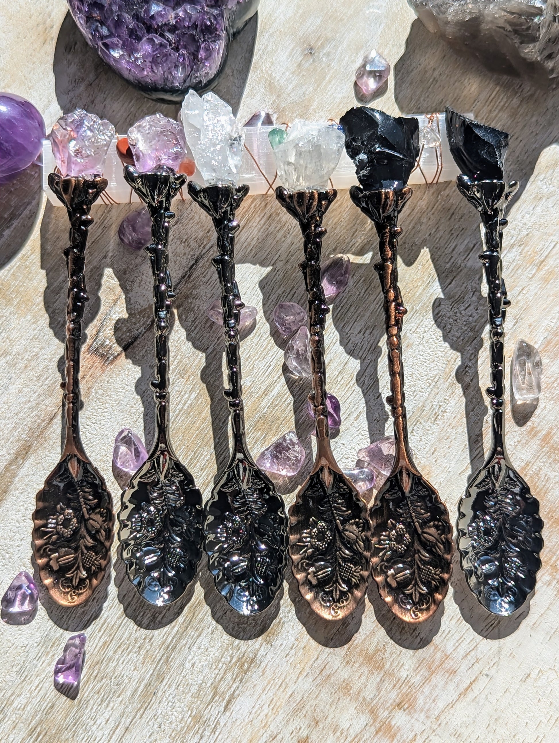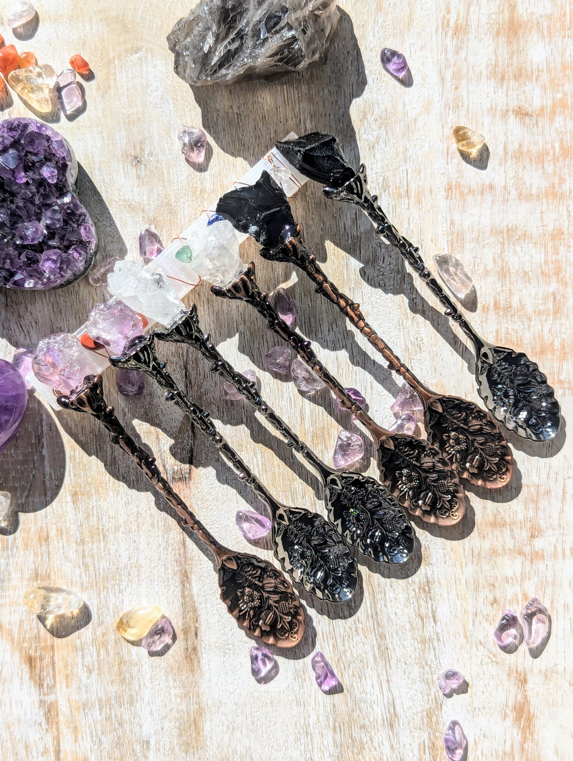 These spoons are food-safe and ideal for stirring intention and energy into your tea or coffee, scooping incense and herbs, or adorning your altar.