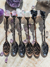 Our Handcrafted genuine Witchy Crystal Spoon is a one-of-a-kind creation, combining the beauty of nature with the art of craftsmanship. Each spoon features a unique crystal handle, carefully selected for its individual properties and energy. The crystal is delicately placed atop the handcrafted silver or gold-plated handle, creating a truly elegant and functional piece.